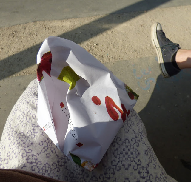 This apple tart recipe is something I have been making for years. It takes only FIVE ingredients and comes together in moments. It is actually a rendition of one from The Barefoot Contessa. She said that it was just like in France, and I dreamed that it was, because it was that good. Then in May of 2018 I got a chance to see if it really was authentic. I picked one as my very first breakfast in Paris, see here- Paris Trip Monday. They wrap your purchases so artfully in twists of waxed paper...